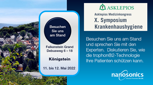 Nanosonics freut sich über die Teilnahme am Asklepios Medizinkongress X. Symposium Krankenhaushygiene in Königstein.