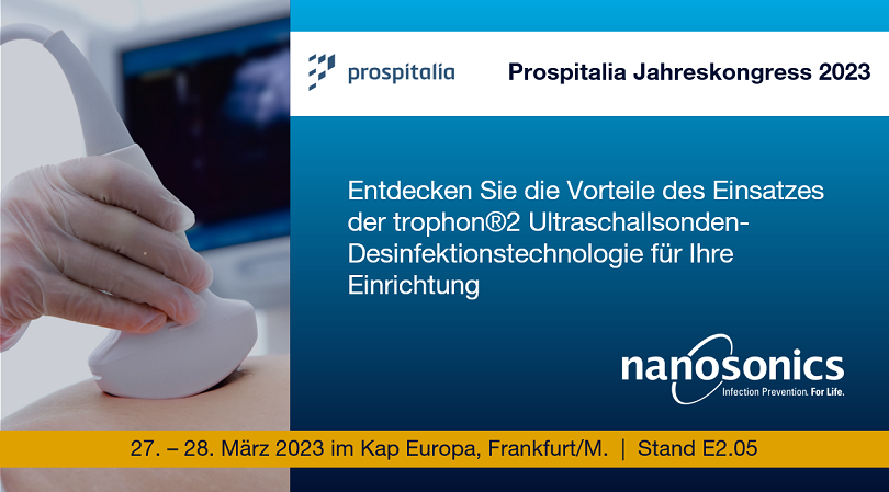 Wir freuen uns auf die Teilnahme am Prospitalia-Jahreskongress 2023 und darauf, die Vorteile des Einsatzes der trophon®2-Ultraschallkopfdesinfektionstechnologie zu diskutieren.